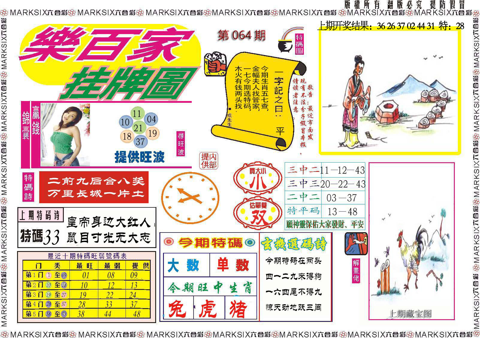 064期:★平特4肖★【狗马猪鼠】开0个准